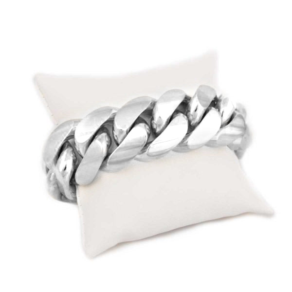 The 18 MM Silver Cuban Link Bracelet from our Premium Handcrafted Collection is a refined piece that showcases the timeless beauty of pure silver, making it a luxurious and elegant accessory for any occasion.