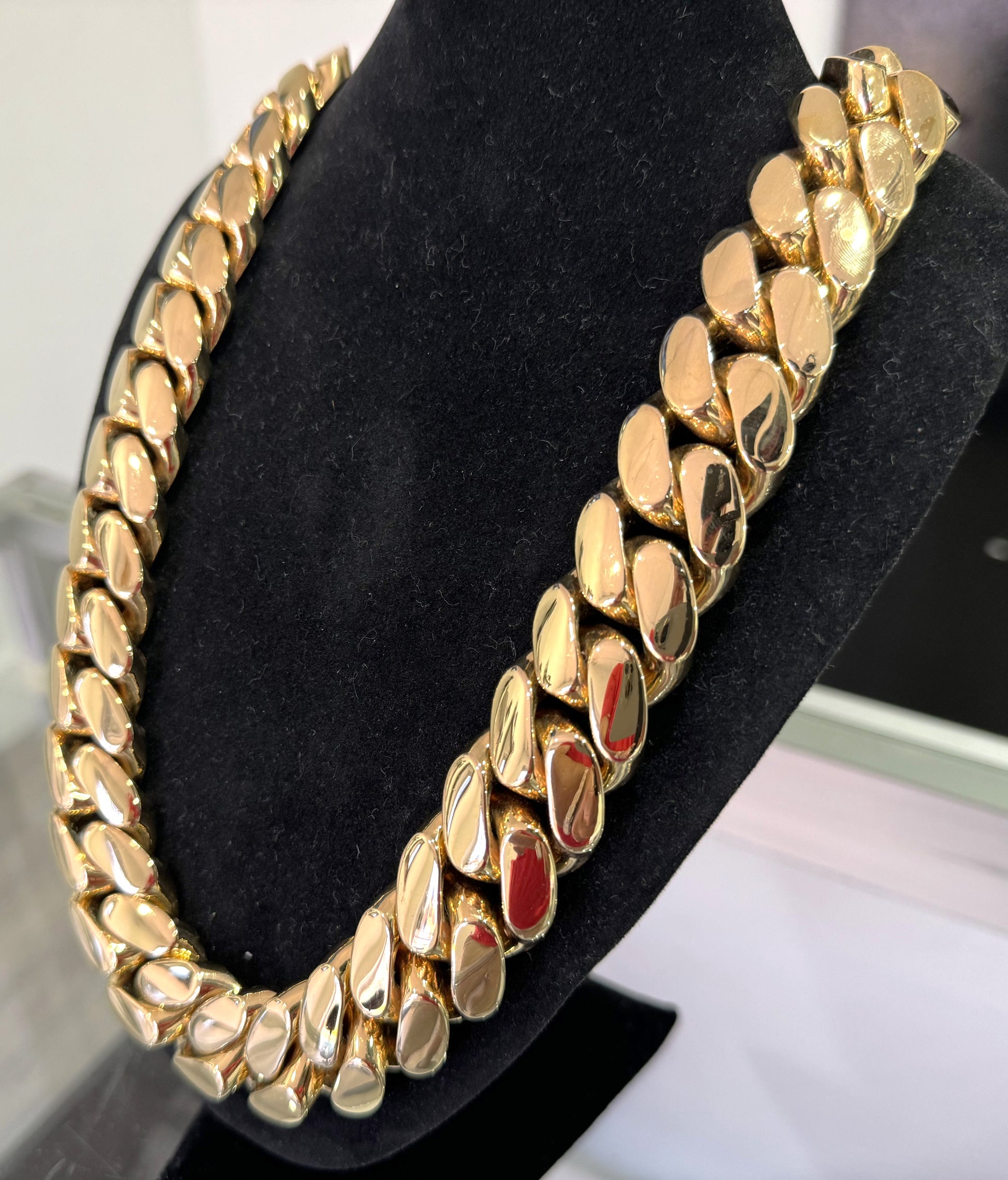 The longevity of your chain's finish will vary depending on individual care and usage. To maintain its brilliance, we recommend avoiding exposure to harsh chemicals and storing it properly when not in use. With proper care, your Kilo Cuban Link Chain will remain a timeless piece in your jewelry collection.